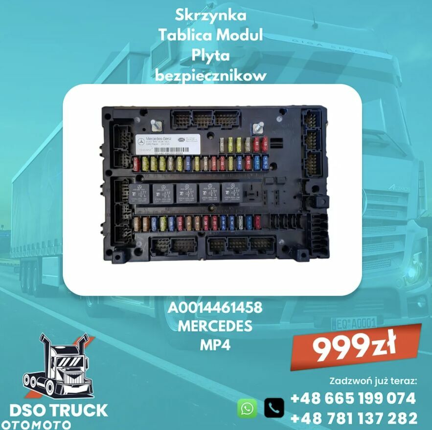 Skrzynka Tablica Modul Plyta bezpiecznikow A0014461458 A0014461558 MERCEDES MP4Szukasz oryginalnej Skrzynki Tablicy Modulu Plyty bezpiecznikow